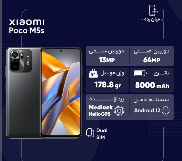 گوشی موبایل شیائومی مدل Poco M5s دو سیم کارت ظرفیت 256 گیگابایت و رم 8 گیگابایت - گلوبال