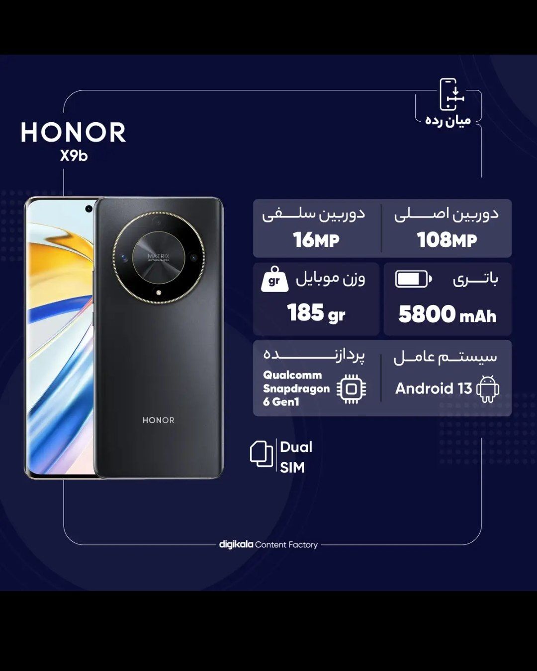 گوشی موبایل آنر مدل X9b(استوک) دو سیم کارت ظرفیت 256 گیگابایت و رم 12 گیگابایت
