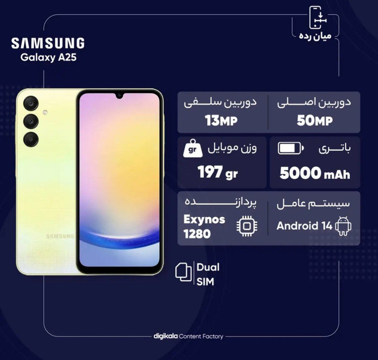 گوشی موبایل سامسونگ مدل Galaxy A25 5G(استوک)1سال گارانتی دوسیم کارت ظرفیت 128گیگابایت و رم 6گیگابایت-ویتنام